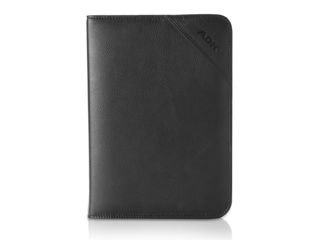 Kožené zipové desky ADK Diplomat formátu A5 v černé barvě. Desky jsou šité v České republice z měkké a na omak příjemné hověziny s mírně kontrastním štepováním a zpracované do nejmenších detailů.