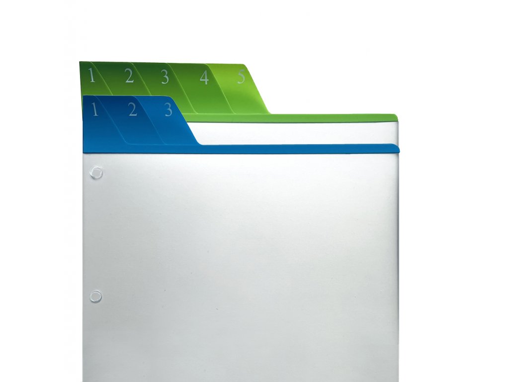Plastové deliace listy (rozdeľovače) s číslami: **1-3 modré** a **1-5 zelené**formátu **A6** .