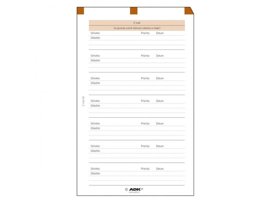 Formulár E-mail formátu A6 (5 listov) - hnedá oblasť.