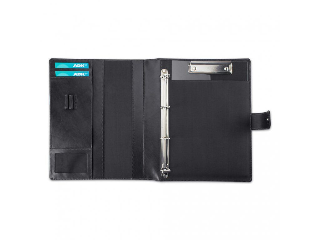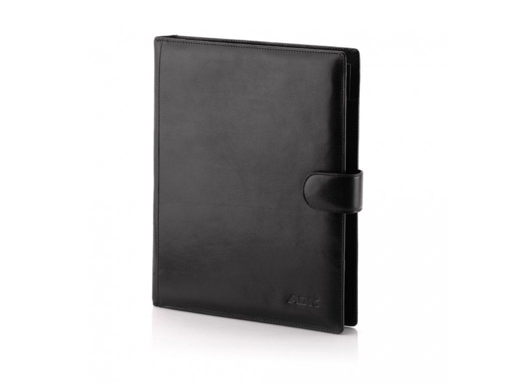 Kožená kroužková spisovka A4 se zapínáním na zápinku ADK Brusel z hladké kůže v černé barvě.